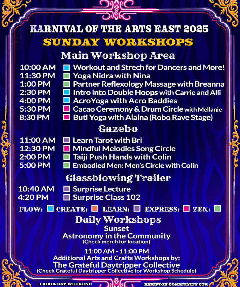 We are happy to announce we will be returning to Kempton, PA for our sixth installment of Karnival of the Arts - East on Aug 28 - Sept 1, 2025. If you were at Karnival of the Arts on either Koast this year, you already know.